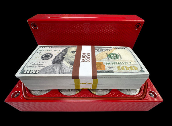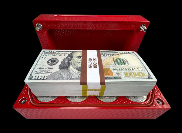 Our survival line of bricks are designed to hold gold and silver coins and bars in addition to cash. People have said "cash is king" for years, but the value of paper currency is subject to extreme fluctuation at any time. Gold and silver are tangible assets with a far more consistent value, but most people feel safer using a bank rather than a shoebox full of metal. Thus, the survival brick was born.